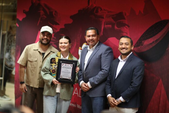 El alcalde entregó este reconocimiento a la vez que externó su felicitación por el logro de la banda; “este es un triunfo que celebra el talento y perseverancia de la agrupación juarense y paseña, quienes con su arte han llevado un mensaje de unidad y amor que trasciende fronteras”.