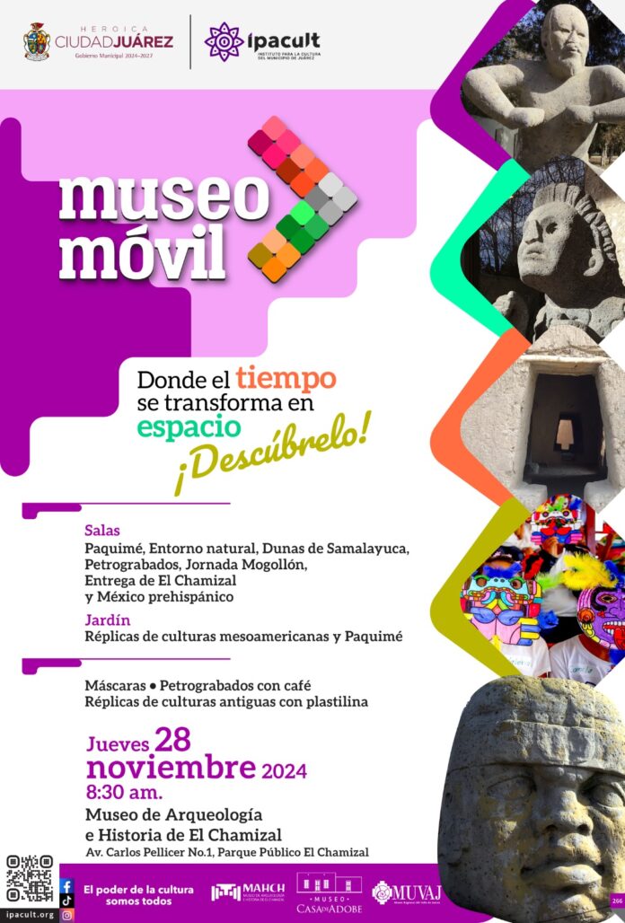 A través del programa “Museo Móvil” del Instituto para la Cultura del Municipio de Juárez (IPACULT), los alumnos de la Escuela Primaria Miguel Ahumada 2289 tendrán la oportunidad este jueves, de explorar el Museo de Arqueología e Historia de El Chamizal (MAHCH).