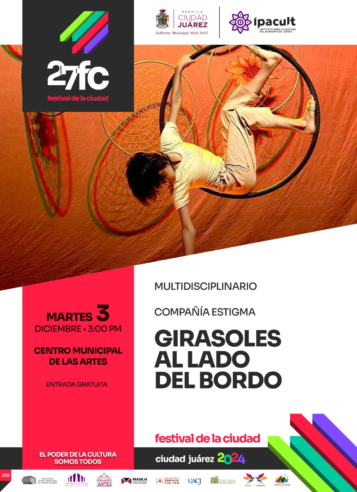La función se llevará a cabo mañana martes 3 de diciembre a las 03:00 de la tarde en el Centro Municipal de las Artes (CMA), como parte de las actividades del Festival de la Ciudad, que celebra el 365 aniversario de la fundación de Ciudad Juárez.