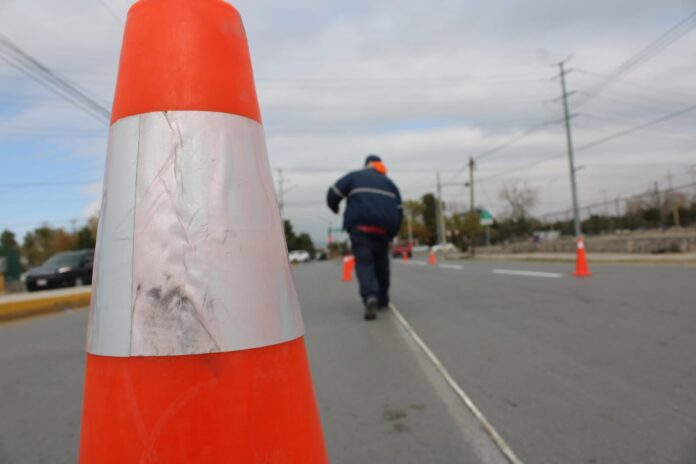 Personal del área de Control de Tráfico, adscrito a la Coordinación General de Seguridad Vial, trabajó en la aplicación de pintura para delimitar los carriles de circulación vehicular en la calle Costa Rica, en el tramo que va desde la avenida Ing. David Herrera Jordán a la Heroico Colegio Militar.