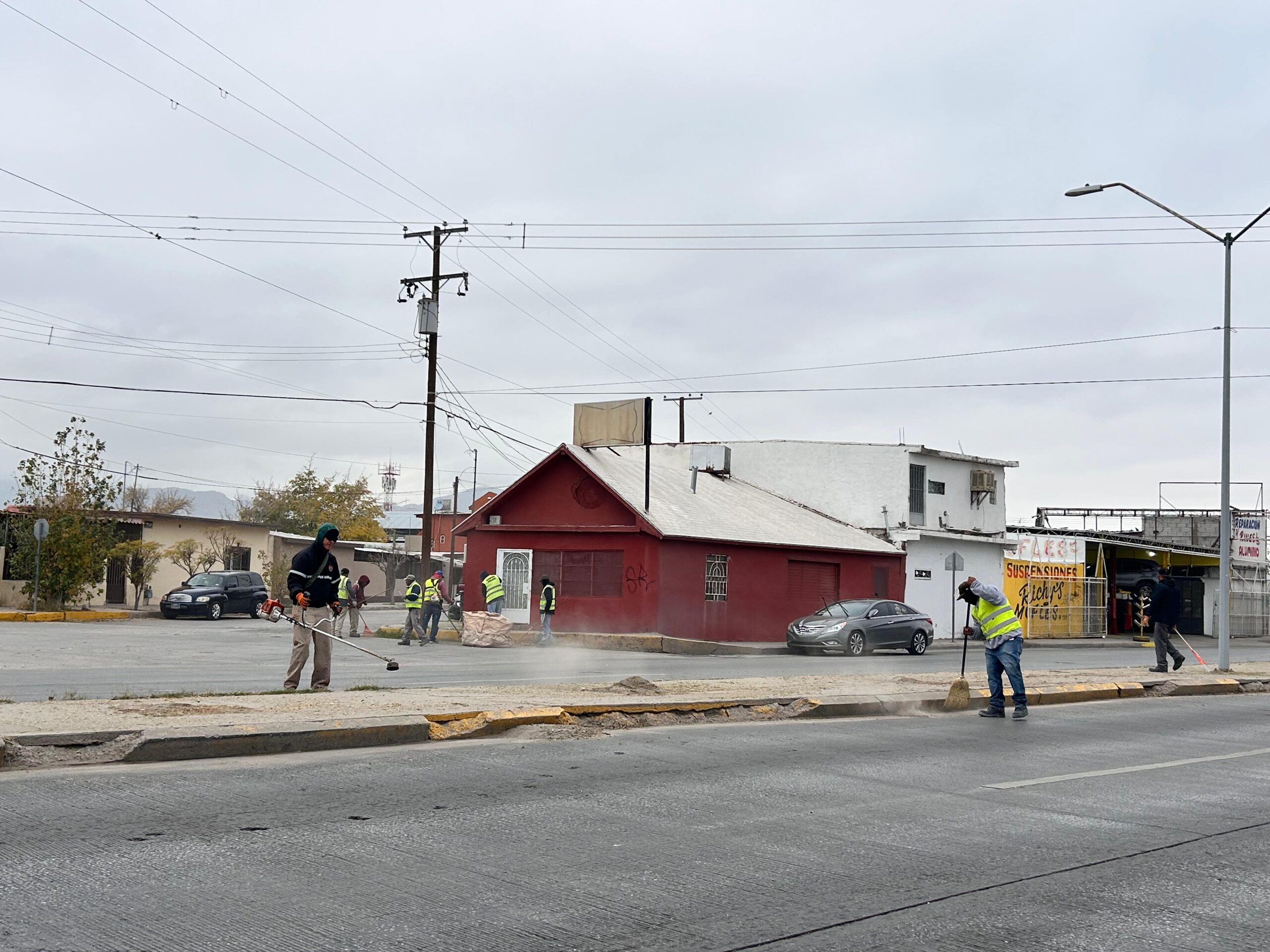 Rivera Barreno destacó que desde este martes, a primera hora, compañeros de las tres dependencias se encuentran realizando las actividades correspondientes a sus respectivas áreas, destacando que el principal reto es el acumulamiento de tierra de arrastre en los laterales y guarniciones de las banquetas.