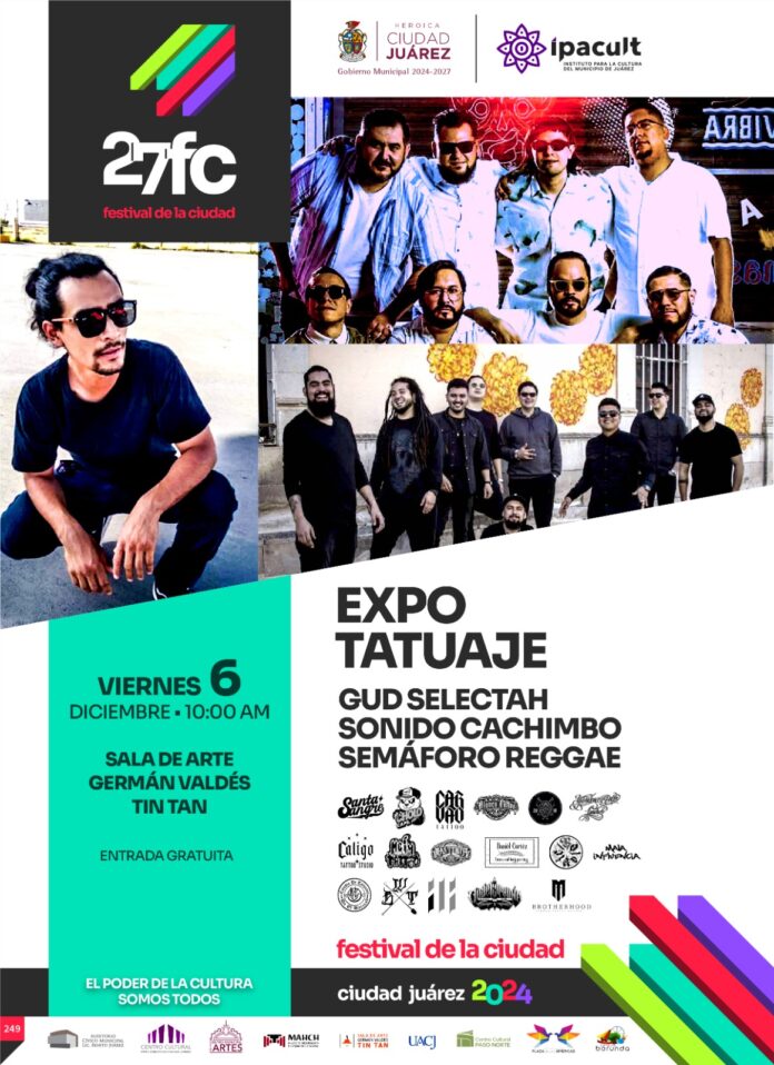 En el marco de la edición 47 del Festival de la Ciudad, el Instituto para la Cultura del Municipio de Juárez (IPACULT) invita a la ciudadanía a participar en el evento “Expo Tatuaje”, que se llevará a cabo este viernes 6 de diciembre a partir de las 10:00 de la mañana en la Sala de Arte German Valdés Tin Tan.