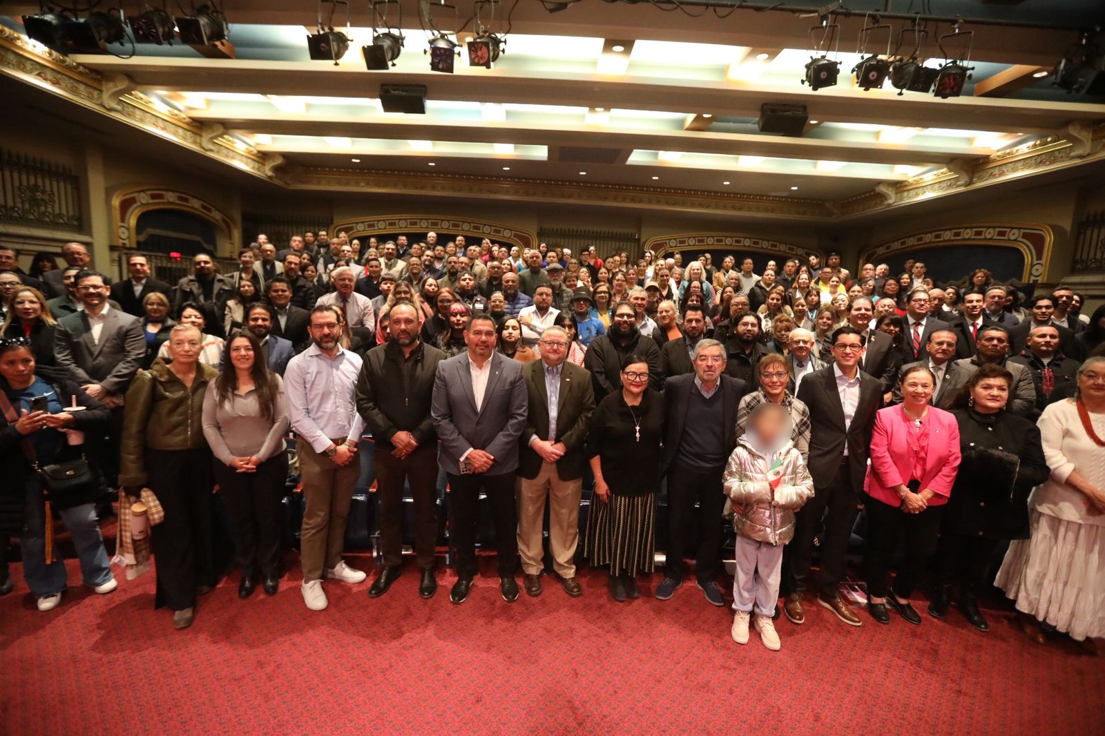 El alcalde estuvo acompañado por el secretario del Ayuntamiento, Héctor Rafael Ortiz Orpinel y de la mayoría de los directores municipales, quienes se congregaron en el Teatro Plaza.