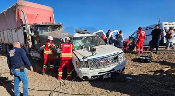 El accidente fue a la altura del kilómetro 11 de la citada vía, entre un pesado camión tipo Torton y una pick up GMC, de doble cabina.