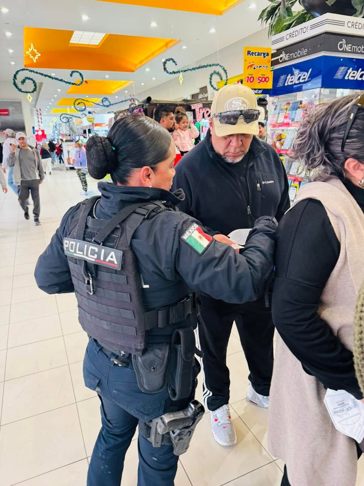 Como parte de la estrategia de prevención, los agentes hacen visitas aleatorias a las diversas plazas comerciales de la ciudad, donde generan cercanía con la población y les comparten información relevante sobre diversos temas de interés.