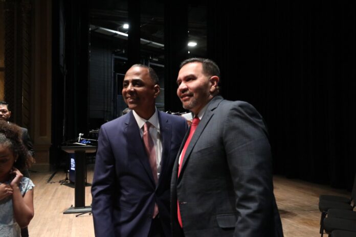 El evento, denominado “Ceremonia de Liderazgo de la Ciudad”, se llevó a cabo en el Teatro Plaza, ubicado en el centro de la ciudad vecina.