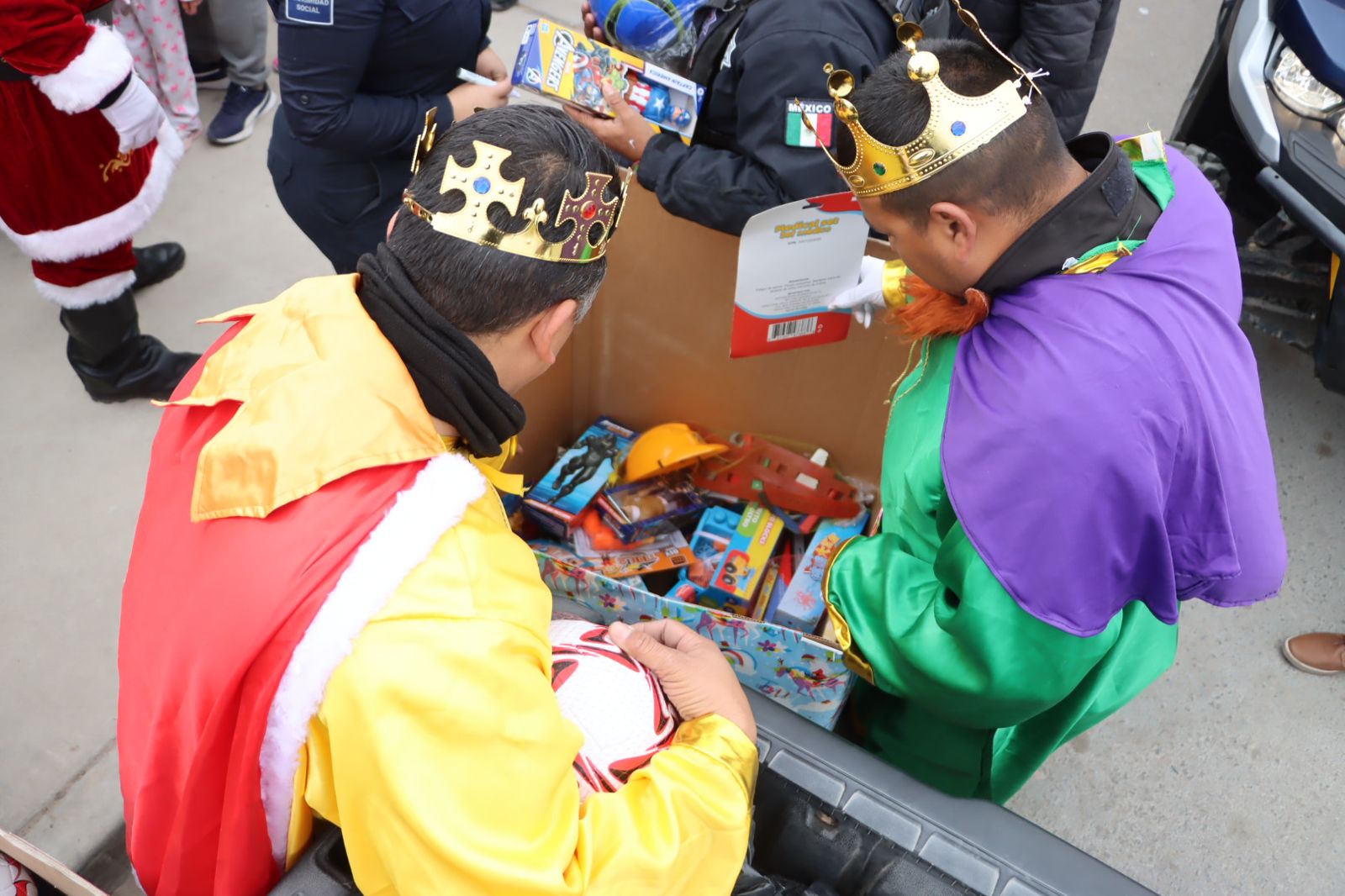 Durante la tradicional caravana del día de Reyes Magos que organizan cada año los policías municipales de Ciudad Juárez, regalaron 5,250 juguetes a los niñas y niños.