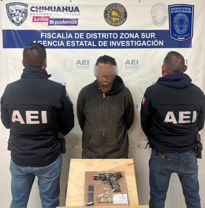 La detención de quien fue identificado como Manuel C. B., de 51 años de edad, tuvo lugar cuando se desplazaba por la carretera Parral – Guadalupe y Calvo, a la altura del kilómetro 2.5.