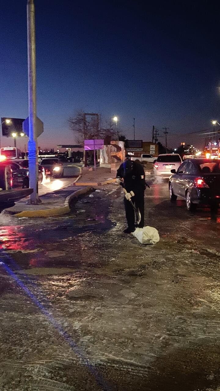 Como parte de las labores preventivas que realiza la Coordinación General de Seguridad Vial, durante los patrullajes que realizan los agentes esparcieron sal y arena en vialidades que representaban algún peligro para el tránsito, debido a la cristalización que se presentó derivado de las bajas temperaturas.