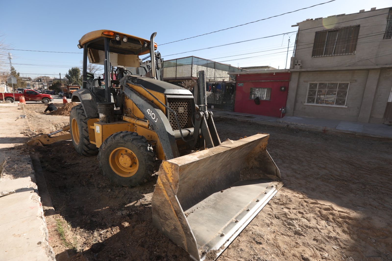 Como parte de la estrategia para mejorar las condiciones de las vialidades en los distintos puntos de la ciudad, la Dirección General de Obras Públicas trabaja actualmente en la construcción, desde cero, de diversas calles como es el caso de la Lirios, en el fraccionamiento Cazadores Juarenses.