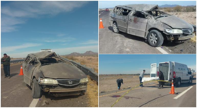 Volcadura de camioneta en carretera cerca de Mapimí propició la muerte de una mujer, Dalia Martínez; y su hija, Brenda Itzel Amaro, además resultaron heridos el conductor y dos menores, todos originarios de Ciudad Juárez, Chihuahua.