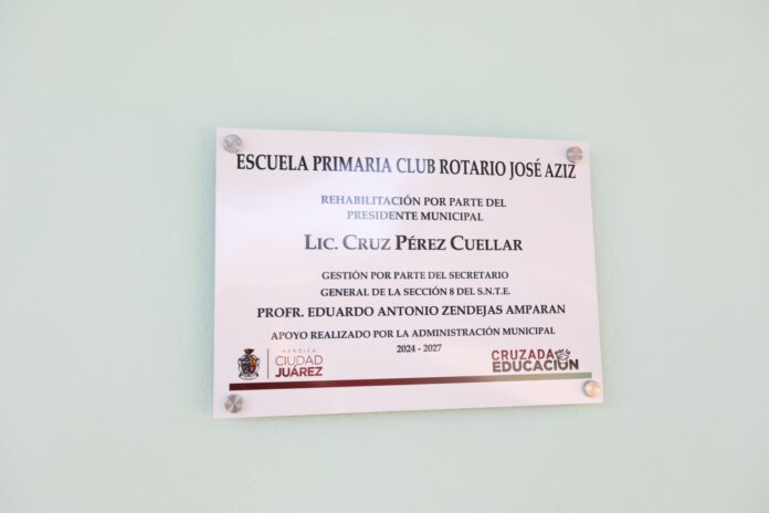 Este día el Presidente Municipal, Cruz Pérez Cuéllar, entregó la rehabilitación de la Escuela Primaria Club Rotario Industrial José Aziz Rahaim, ubicada en la calle Alce en Eco 2000, la cual se pintó y le impermeabilizaron los techos, entre otras mejoras.