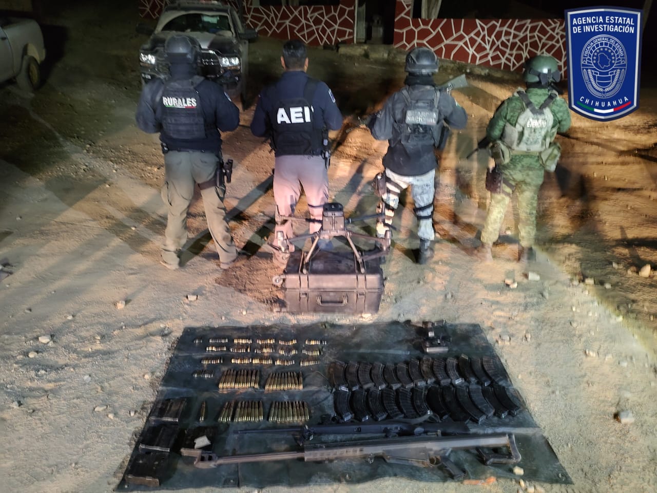 Durante operativos conjuntos realizados para brindar seguridad a la población de municipios de la Sierra Tarahumara y disuadir la comisión de delitos, en el municipio de Uruachi las autoridades aseguraron mariguana, artefactos explosivos, dos fusiles, cargadores y cientos de cartuchos de diversos calibres, así como dos drones.