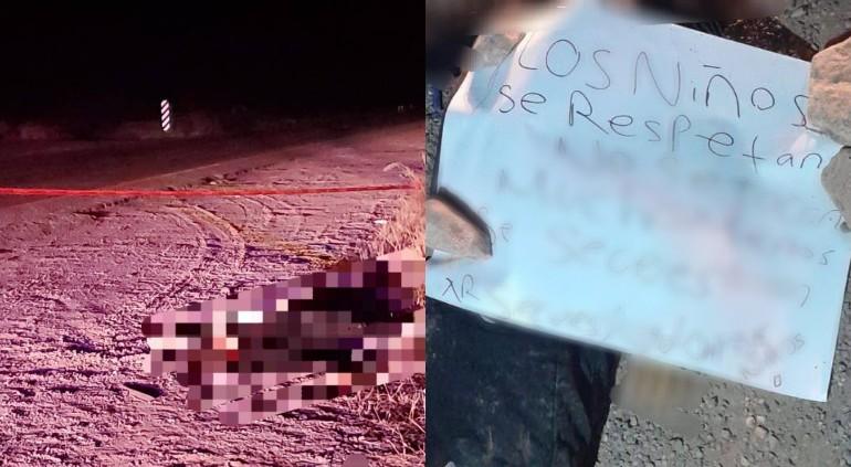 El cuerpo tenía una cartulina en la que aseguraban que la víctima era secuestrador de niños, y advertían que los menores se respetan.