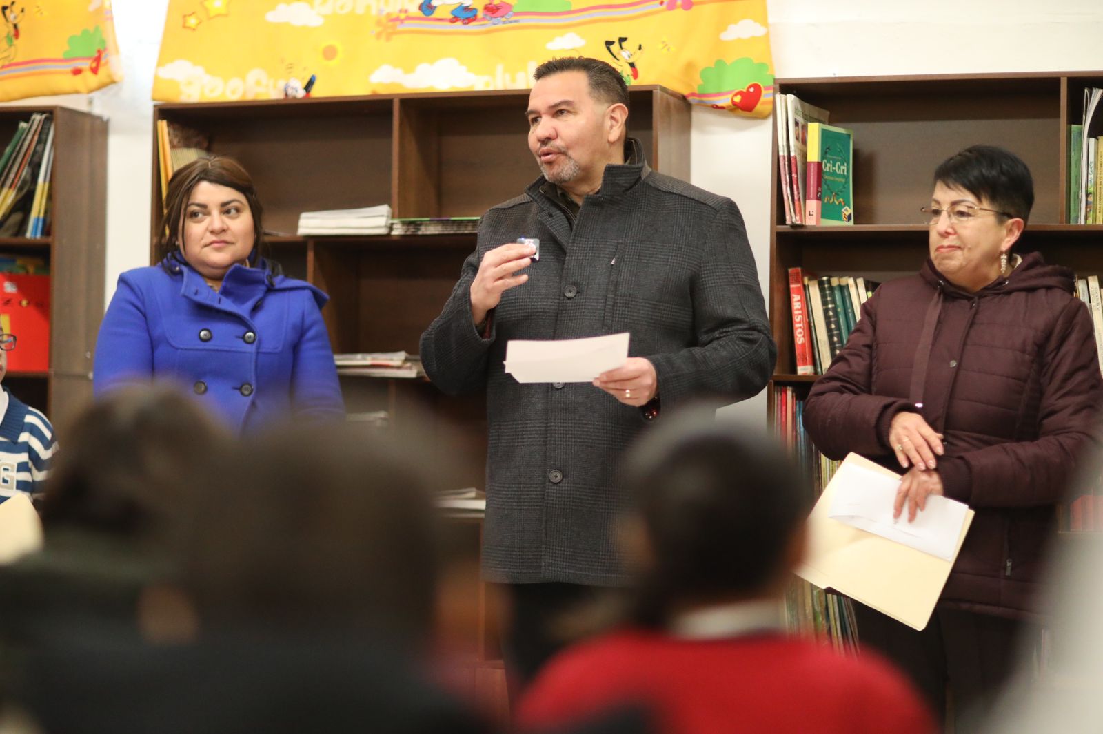 En la entrega también estuvieron la madre de familia Elizabeth Calvillo, la subdirectora del plantel del turno matutino, Alicia Quiroz y el coordinador de Infraestructura Educativa del Municipio, Ismael Rueda.