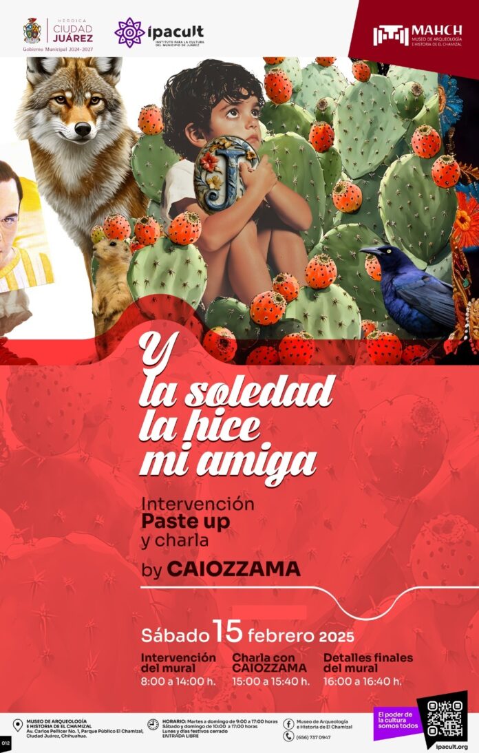 El Instituto para la Cultura del Municipio de Juárez (IPACULT) invita a la ciudadanía a presenciar la creación de un mural, así como la conferencia “Y la soledad la hice mi amiga”, que se llevará a cabo el próximo sábado 15 de febrero en el Museo de Arqueología e Historia de El Chamizal.