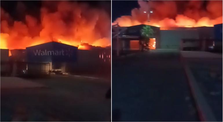 Incendio arrasa con Walmart Delicias durante la madrugada