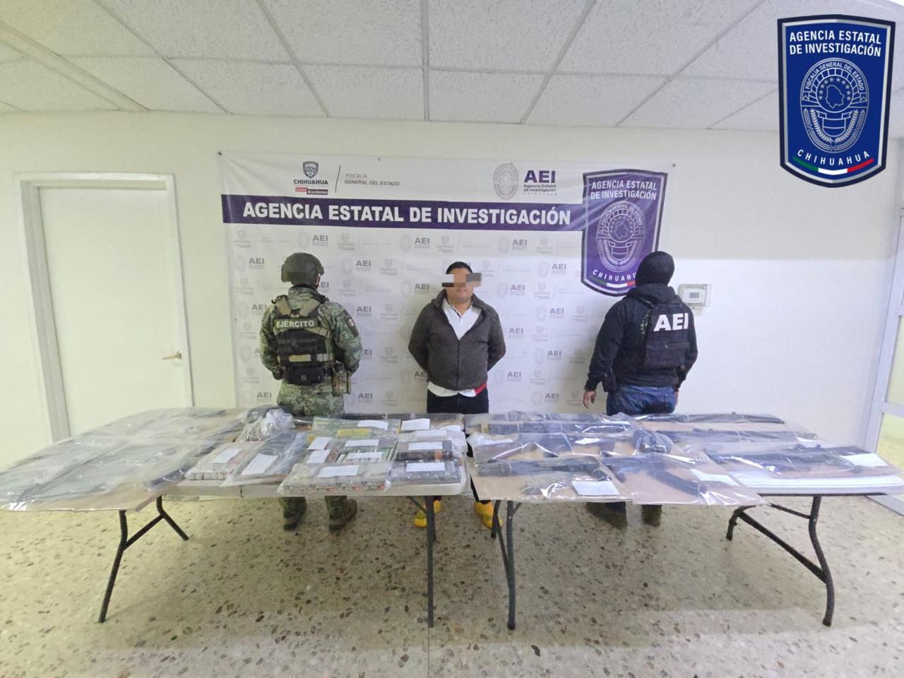 A través de un operativo,Policías de la Agencia Estatal de Investigación de la Fiscalía General del Estado, con apoyo de personal del Ejército Mexicano, capturaron en la ciudad de Chihuahua a un sujeto en posesión de armas, cargadores y cartuchos, además de droga.