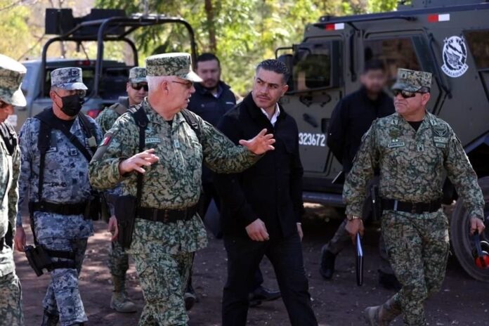 Omar García Harfuch, titular de SSPC, y Ricardo Trevilla Trejo, secretario de Defensa, en Sinaloa. Crédito: Especial