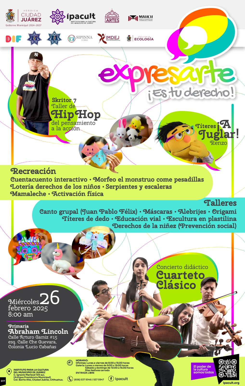 Con la colaboración del Sistema Municipal de Protección Integral de Niñas, Niños y Adolescentes (SIPINNA Juárez), este programa ofrece un espacio donde los estudiantes podrán desarrollar su creatividad mediante talleres de canto, máscaras, alebrijes, origami, títeres de dedo, escultura en plastilina y educación vial.
