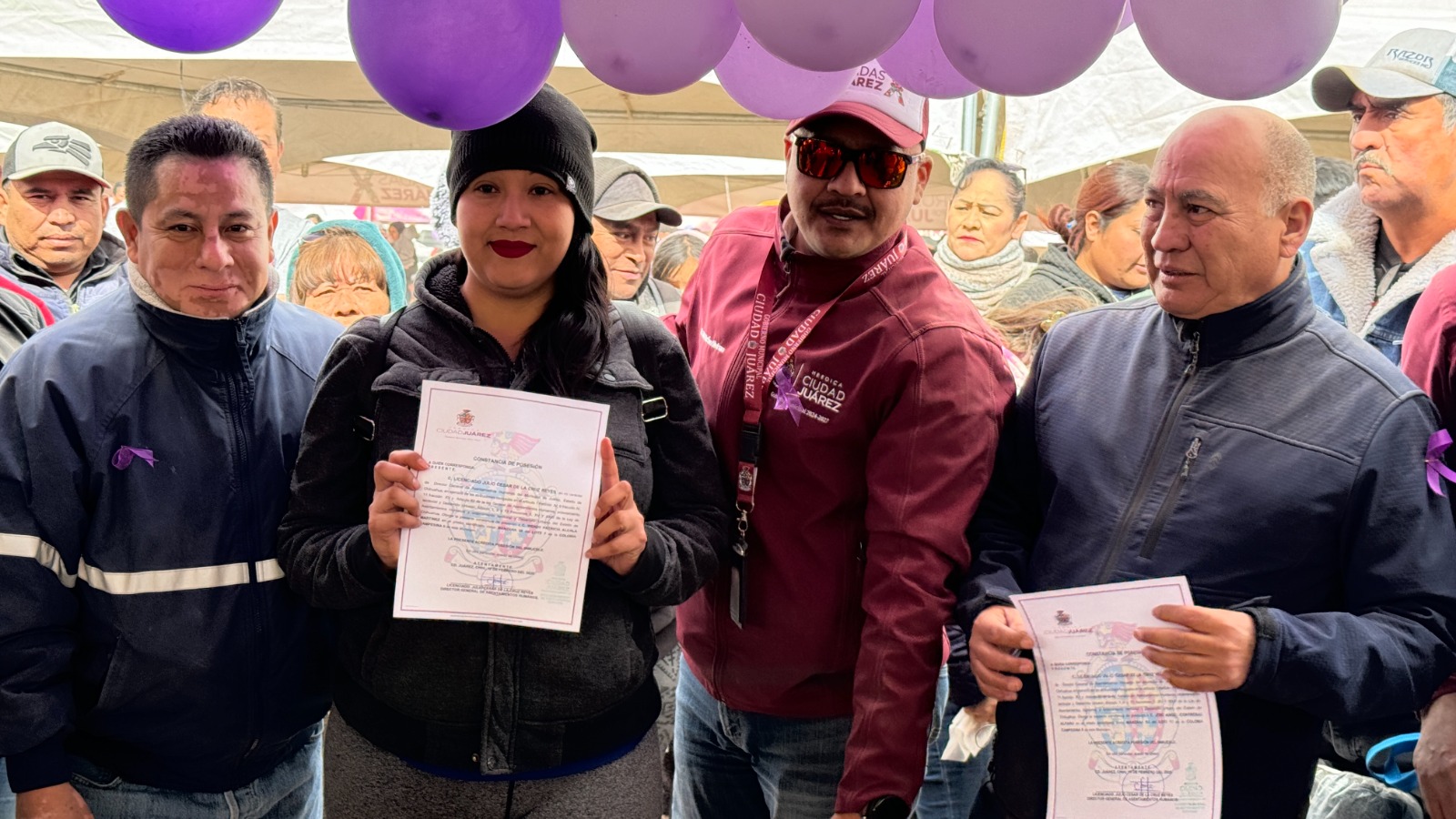 La Dirección General de Asentamientos Humanos entregó más de 50 constancias de posesión a vecinos del Kilómetro 20, durante el desarrollo de la Cruzada por Juárez “Atención a las Causas, Ciudad Juárez por la Paz”.