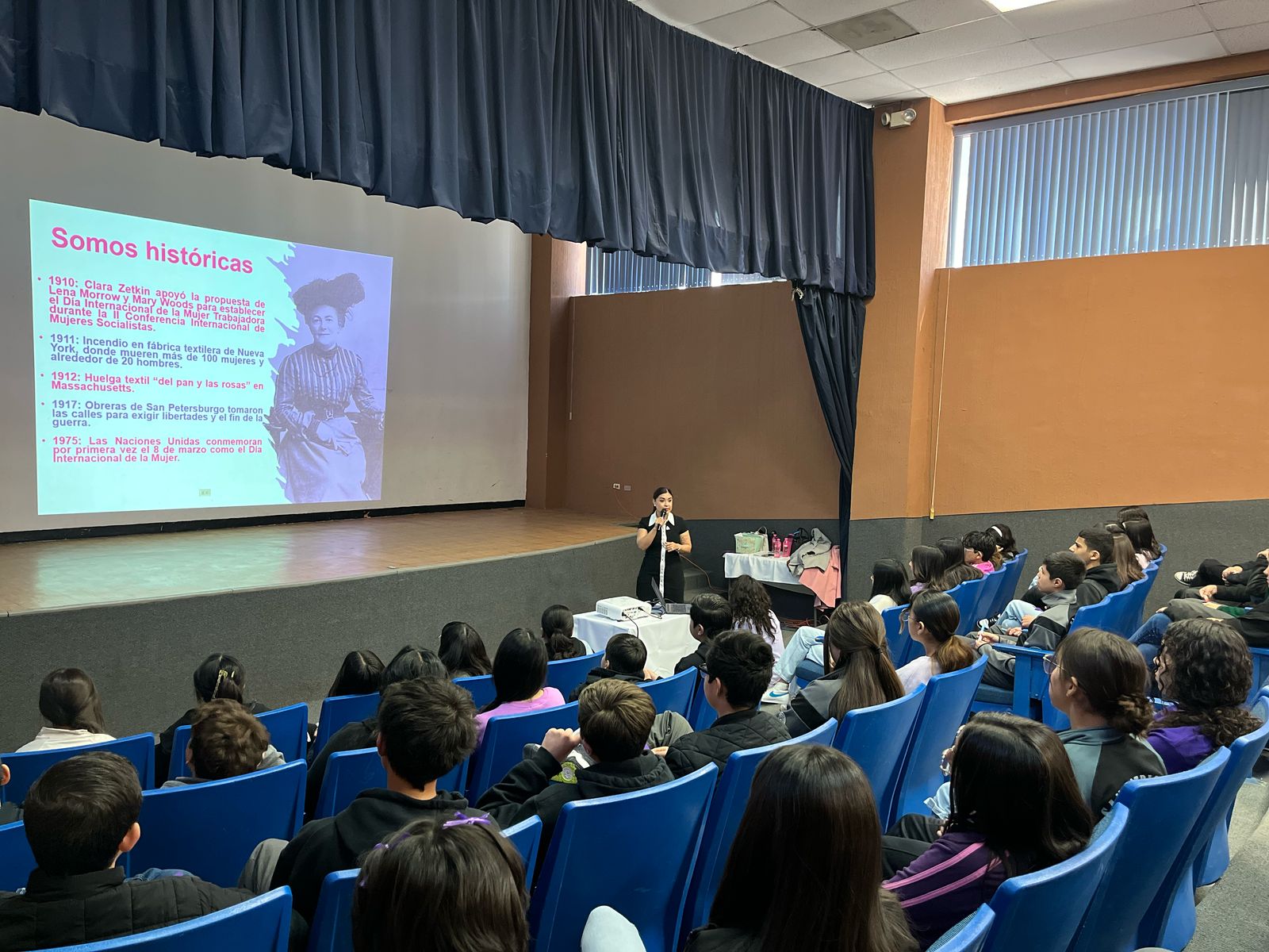 Además, en el marco del 8 de marzo, el área de Prevención brindó información sobre los hechos históricos que dieron origen al Día Internacional de las Mujeres, donde a través de un espacio de diálogo e intercambio de opiniones, el equipo del IMM promovió la reflexión de la comunidad estudiantil sobre el significado de los movimientos de las mujeres para el acceso a los derechos fundamentales y el respeto al pleno ejercicio de los mimos; así como los retos que quedan pendientes para construir sociedades más justas e inclusivas.