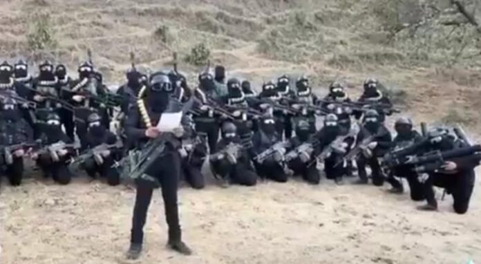 En las imágenes se puede ver a un gran número de hombres fuertemente armados y encapuchados.