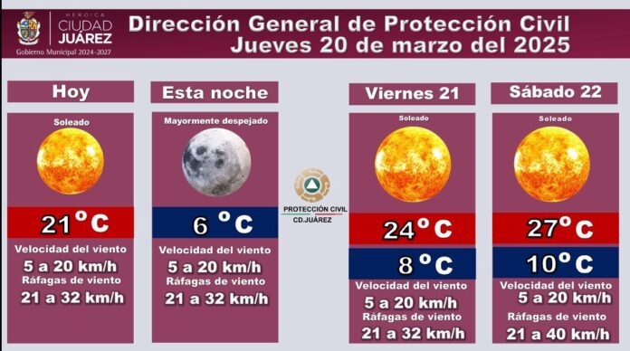 La Dirección General de Protección Civil informa sobre el pronóstico del clima para este jueves 20 de marzo y los días siguientes.