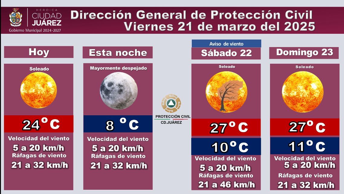 La Dirección General de Protección Civil dio a conocer el pronóstico del clima para los próximos días.