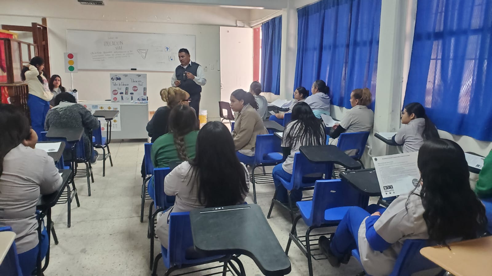 Elementos de la Coordinación General de Seguridad Vial brindaron una charla a estudiantes de la licenciatura de Trabajo Social de la Universidad Autónoma de Ciudad Juárez (UACJ).