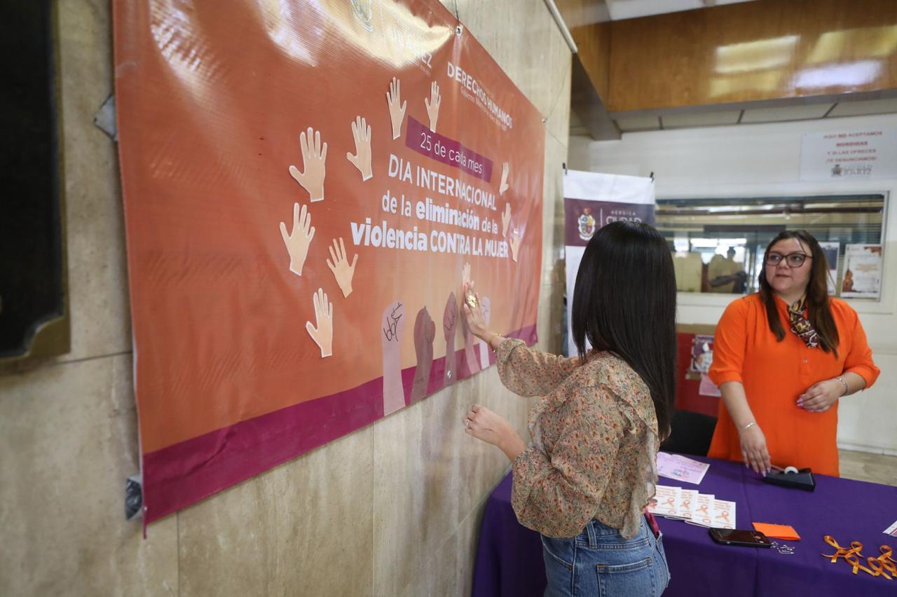 “Además, organizamos una dinámica participativa en la que las y los asistentes pudieron visualizar los distintos tipos de violencia, colocando una manita en una lona como símbolo de su compromiso en la lucha contra esta problemática”, mencionó.