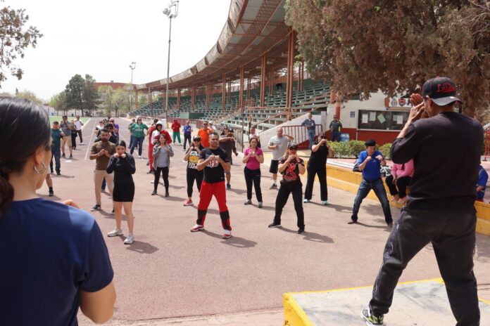 El Estadio Municipal 20 de Noviembre fue el recinto donde entrenadores de boxeo y el personal adscrito al IMDEJ iniciaron con una rutina de calentamiento corporal encabezado por el director del Instituto, Juan Escalante.