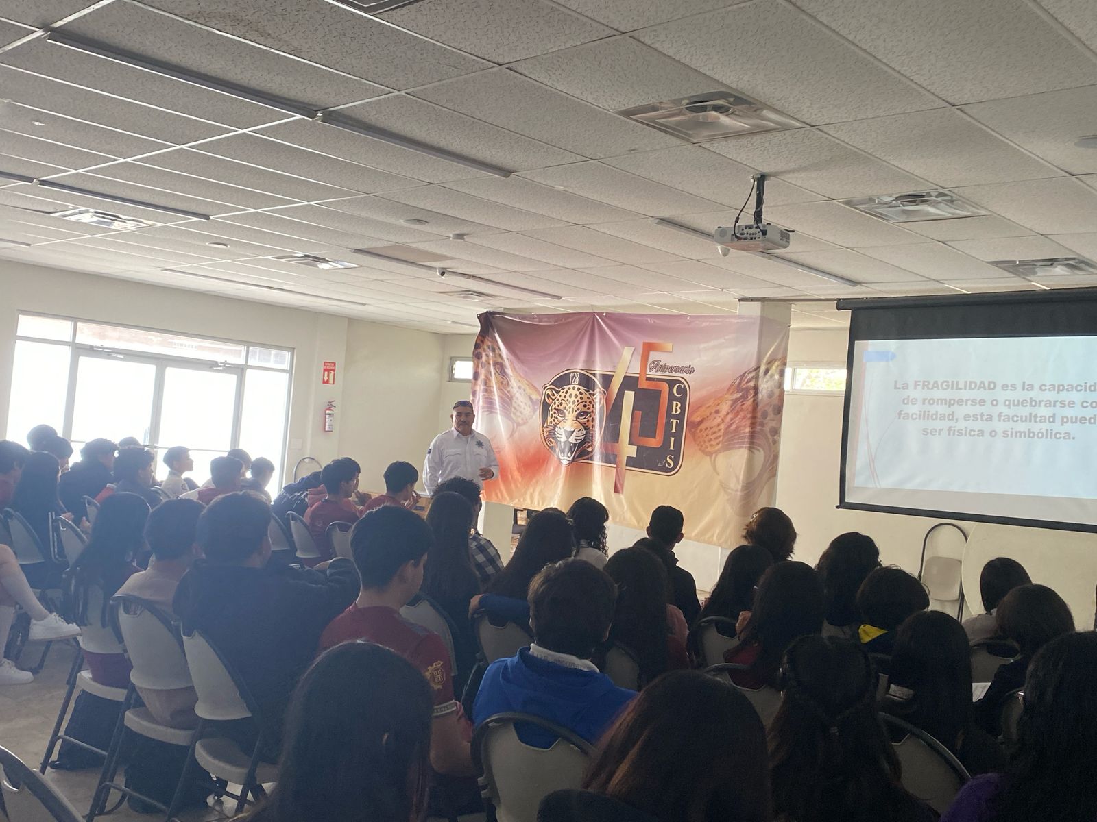 Personal de la Coordinación General de Seguridad Vial dio la plática “Frágil” a 586 estudiantes del Centro de Bachillerato Tecnológico Industrial y de Servicios 128, con el objetivo de informar sobre los riesgos a los que se exponen al no conducir con precaución.
