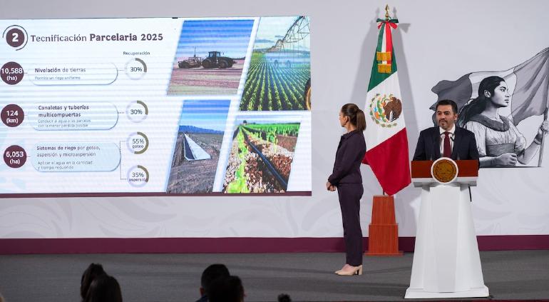 “Vamos a tecnificar 200,000 hectáreas de riego agrícola. Con esto obtendremos mayor productividad en el campo, es decir, más producción con menos agua, y podremos destinar 2,800 millones de metros cúbicos al consumo humano, lo que representa tres veces lo que consume la Ciudad de México”, explicó Sheinbaum.