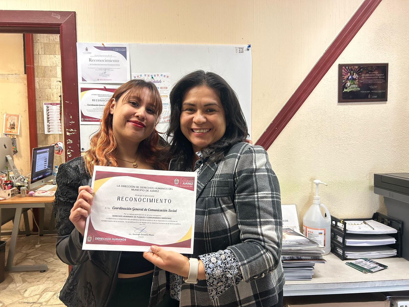 Este día, personal de la Dirección de Derechos Humanos llevó a cabo la entrega de reconocimientos a los empleados de las dependencias que participaron en el curso autogestivo “Derechos de los Pueblos y Comunidades Indígenas”, impartido del 26 de febrero al 12 de marzo.