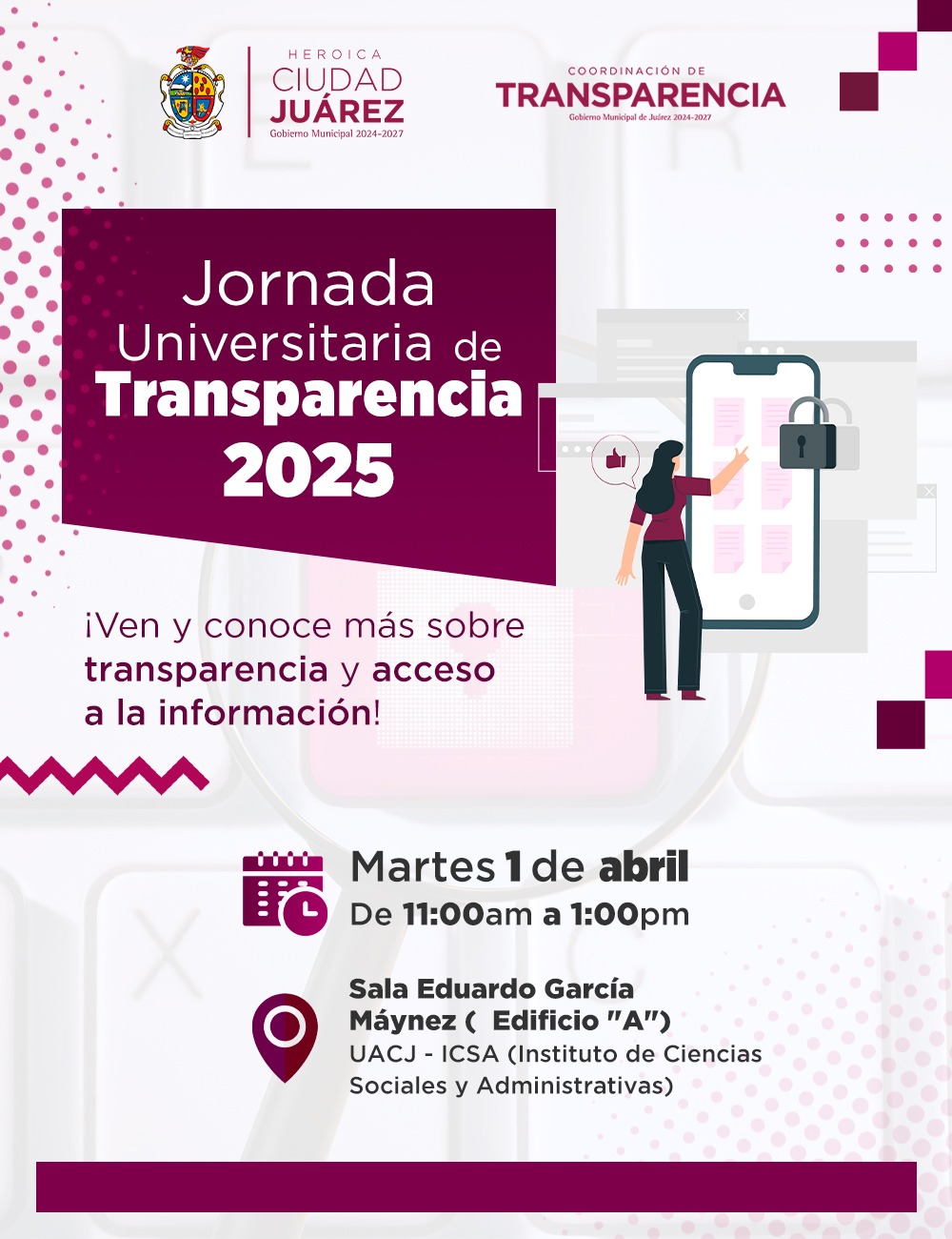 La Coordinación de Transparencia invita a la comunidad en generar a la Jornada Universitaria de Transparencia 2025 que llevará a cabo mañana martes 1 de abril.