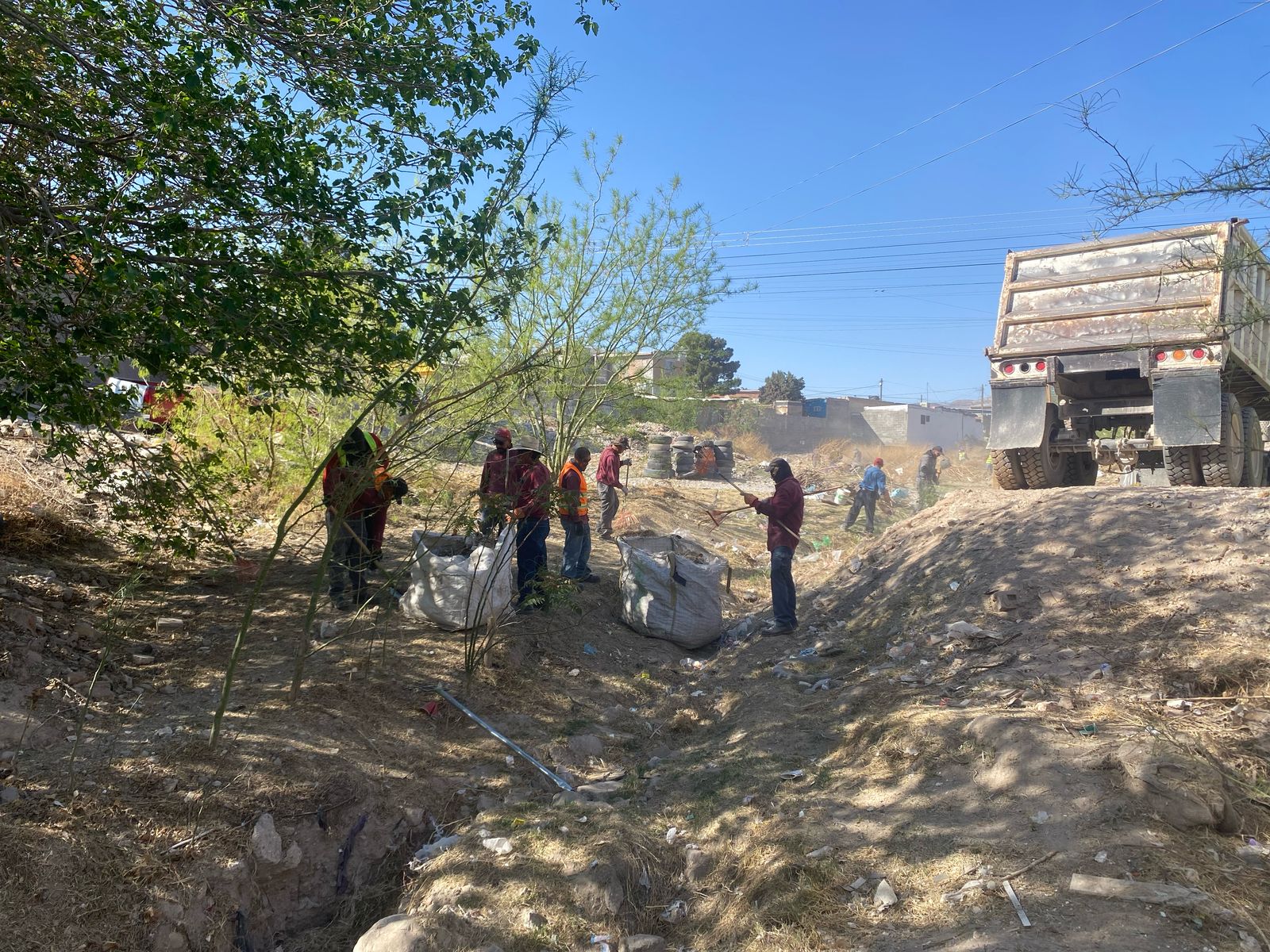 Personal de la Dirección de Limpia trabajó en la colonia Independencia I con servicio de desllanteo, corte de hierba y mantenimiento general de un dique ubicado en el sector, atendiendo así una petición ciudadana que se le realizó al Presidente Municipal, Cruz Pérez Cuéllar, en la pasada Cruzada por Juárez “Atención a las causas, Ciudad Juárez por la Paz” que se desarrolló en la colonia Azteca.