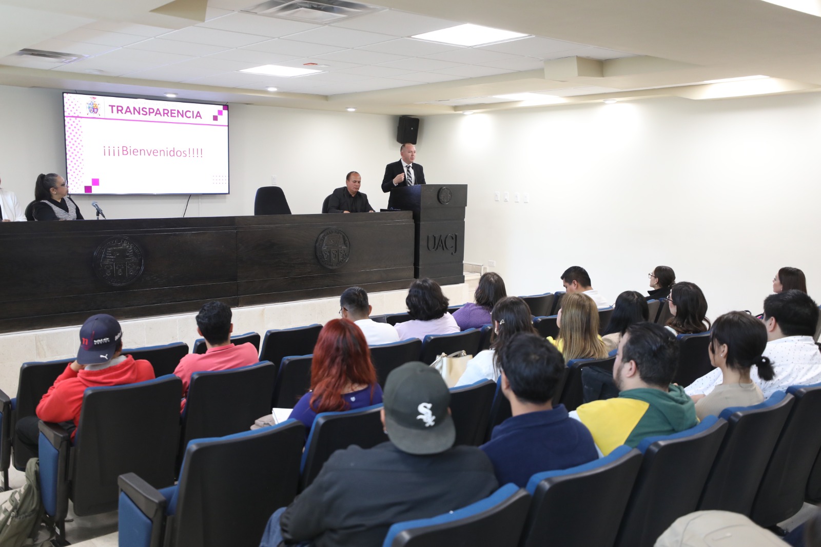 Con el objetivo de que los futuros profesionistas de las carreras de Derecho y Seguridad y Políticas Públicas conozcan cómo ejercer su derecho de solicitar información, el titular de la dependencia, Fernando Gómez Cid de León, brindó una charla a los universitarios.