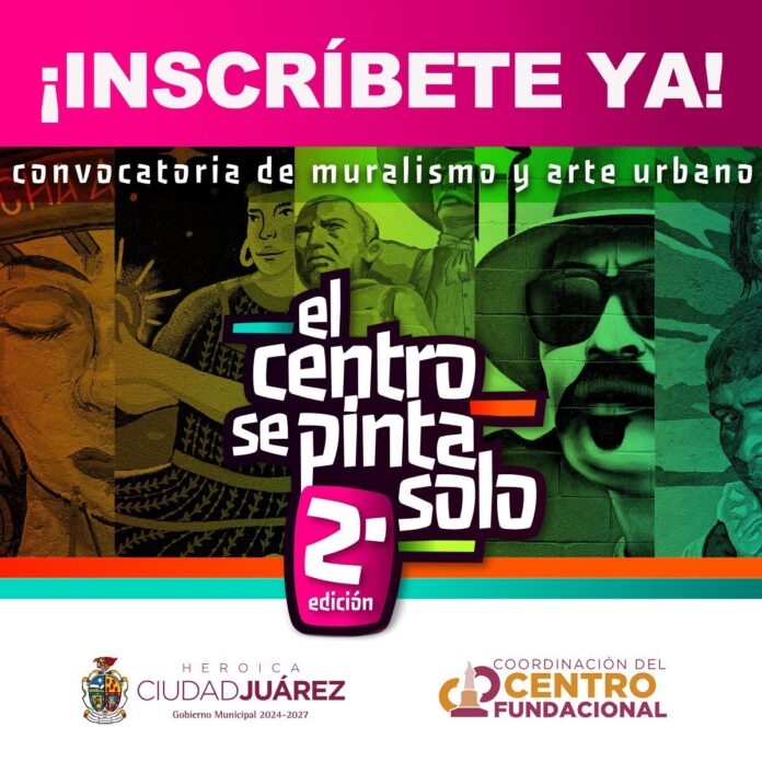 La Coordinación del Centro Fundacional del Municipio, busca a 20 artistas juarenses que quieran participar en la Segunda Edición del Festival El Centro se Pinta Solo.