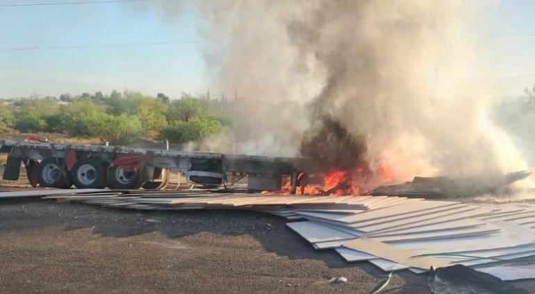 Durante esta mañana se registró el cierre parcial de la carretera Jiménez-Delicias con dirección hacia Chihuahua por el incendio de un vehículo.