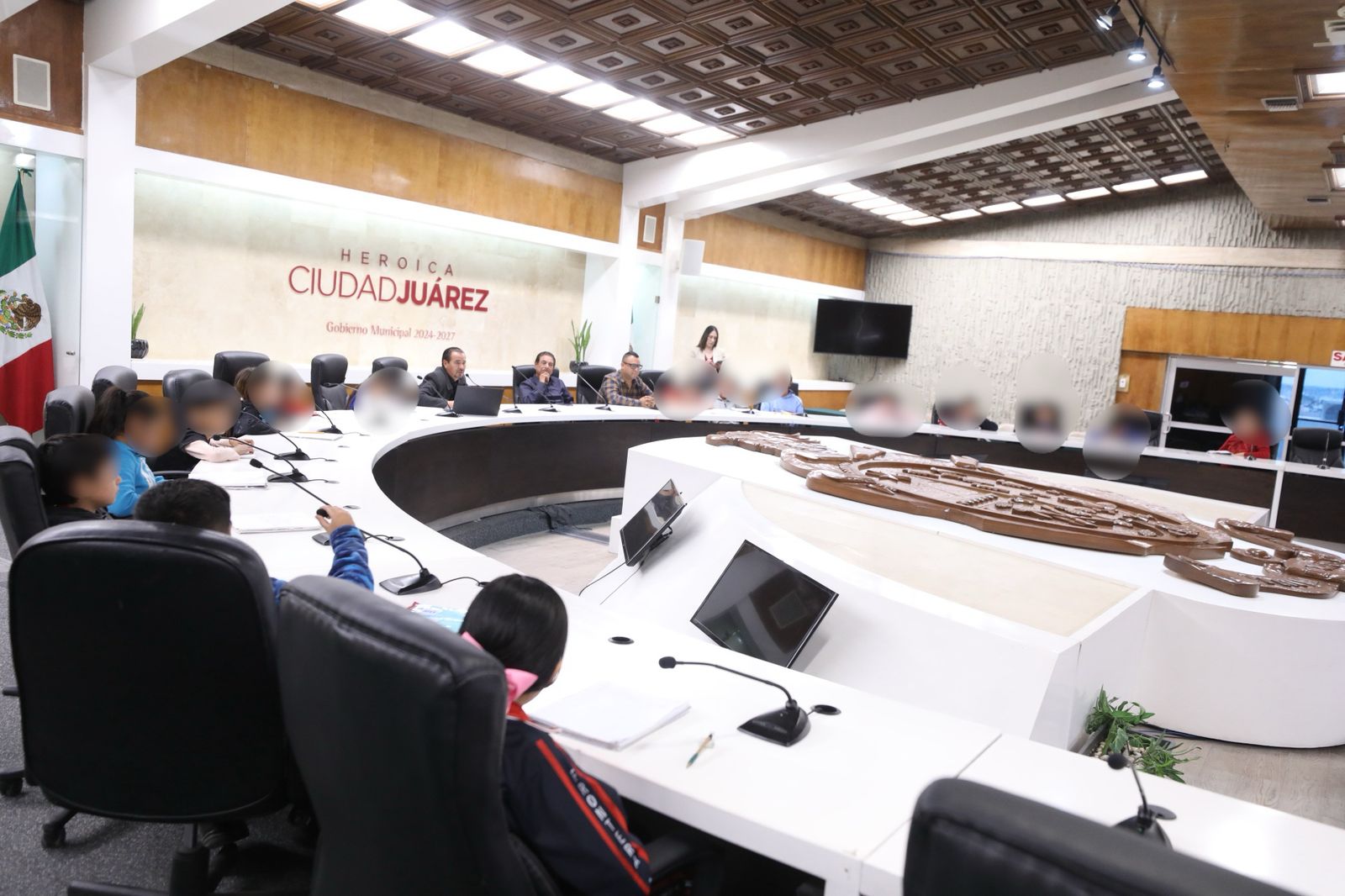 Los alumnos estuvieron en la sala Francisco I. Madero y ocuparon las sillas de los ediles que conforman el Ayuntamiento.