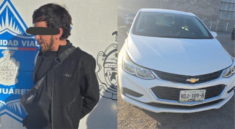 Elementos de la Coordinación de Seguridad Vial pusieron bajo arresto al conductor de un vehículo Chevrolet Cruze 2017 por agredirlos cuando le pidieron salir de la fila del puente Libre para aplicarle la sanción correspondiente por meterse.
