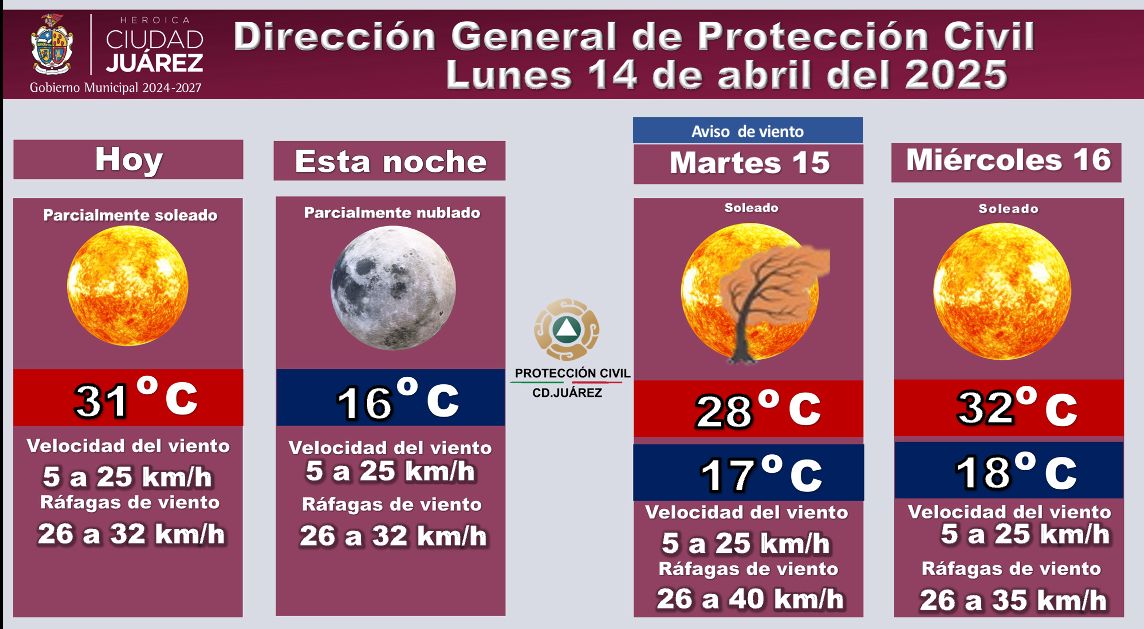 La Dirección General de Protección Civil del Municipio informa sobre las condiciones meteorológicas para los próximos días en esta ciudad.