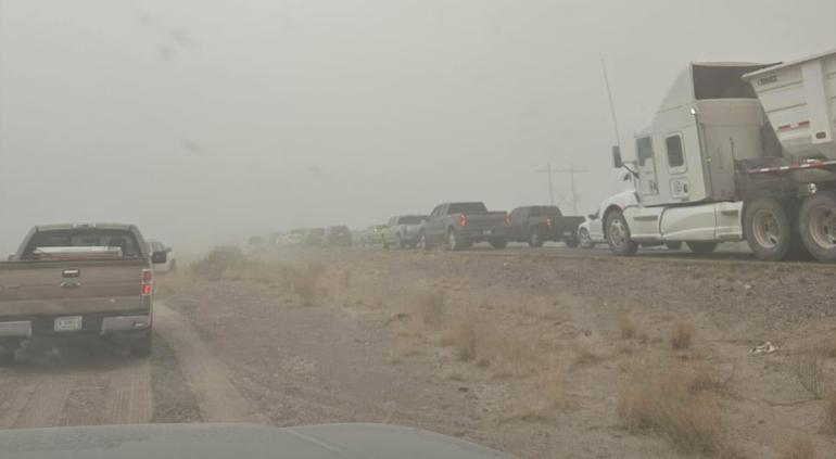 Este viernes 18 de abril, autoridades estatales informaron el cierre del tramo carretero Ciudad Juárez–Ahumada debido a las condiciones extremas provocadas por una intensa tolvanera que afecta la visibilidad, haciendo imposible la circulación vehicular segura.
