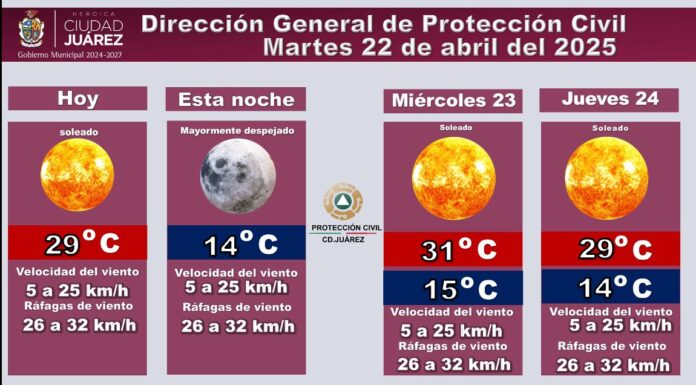 La Dirección General de Protección Civil informa sobre las condiciones climáticas para los próximos días.
