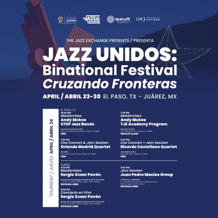 El Jazz Unidos: Binational Festival – Cruzando Fronteras sigue su curso este jueves 24 de abril, con una intensa programación que resalta el talento binacional a través del jazz.
