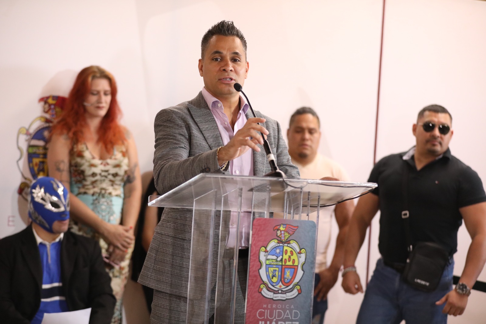 En el marco del día del niño, el director del Instituto Municipal del Deporte y Cultura Física de Juárez, Juan Carlos Escalante y el luchador Ráfaga, presidente de la Honorable Comisión de Lucha Libre, invitaron a la ciudadanía para que asistan al evento “Un día de Aventura para todos”, el próximo 30 de abril.