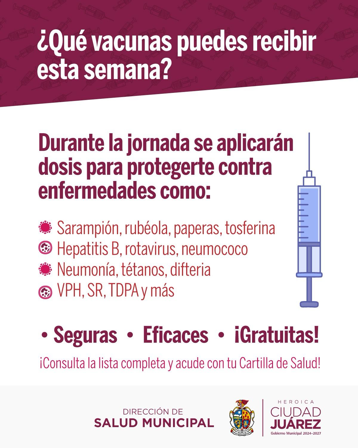 El Gobierno Municipal, a través de la Dirección de Salud, se une a la Semana Nacional de Vacunación, que se llevará a cabo del 26 de abril al 3 de mayo, con el objetivo de completar esquemas de vacunación y reforzar la protección contra enfermedades prevenibles, especialmente el sarampión.