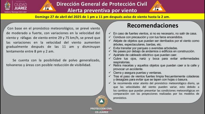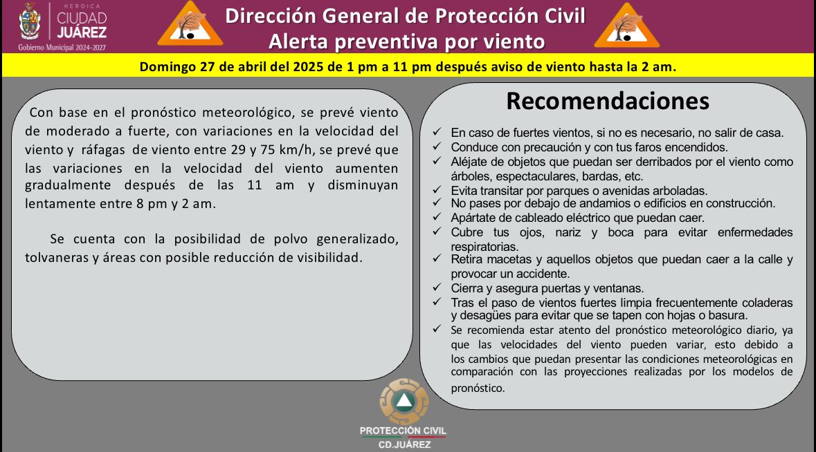 HomeREGIONALESJuárezEmite Protección Civil alerta preventiva por viento para este domingo