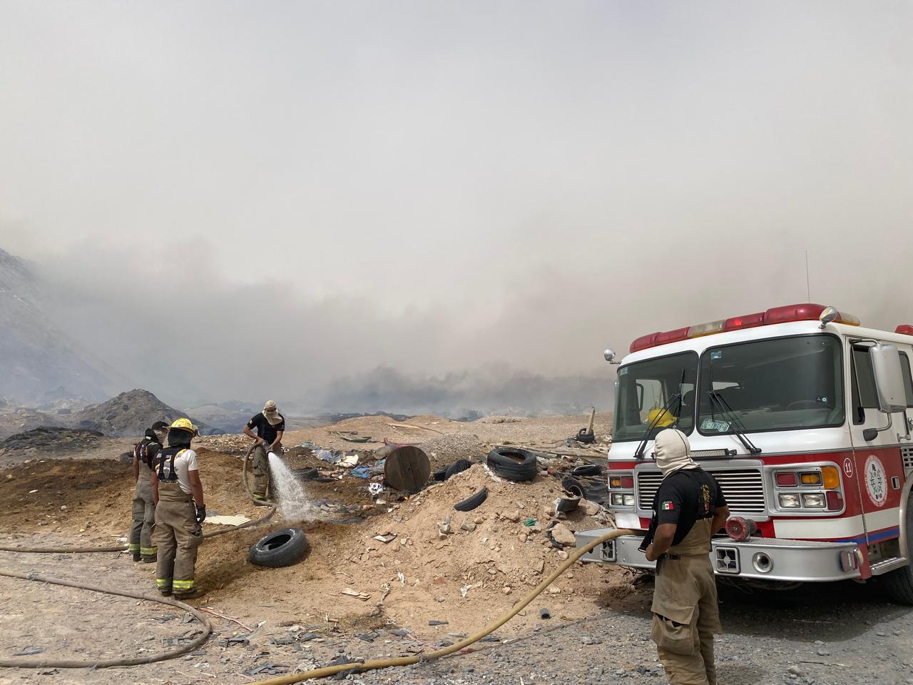 “El incendio es extenso, ya que en el lugar hay acumulación de llantas, plástico y basura”, mencionó.
